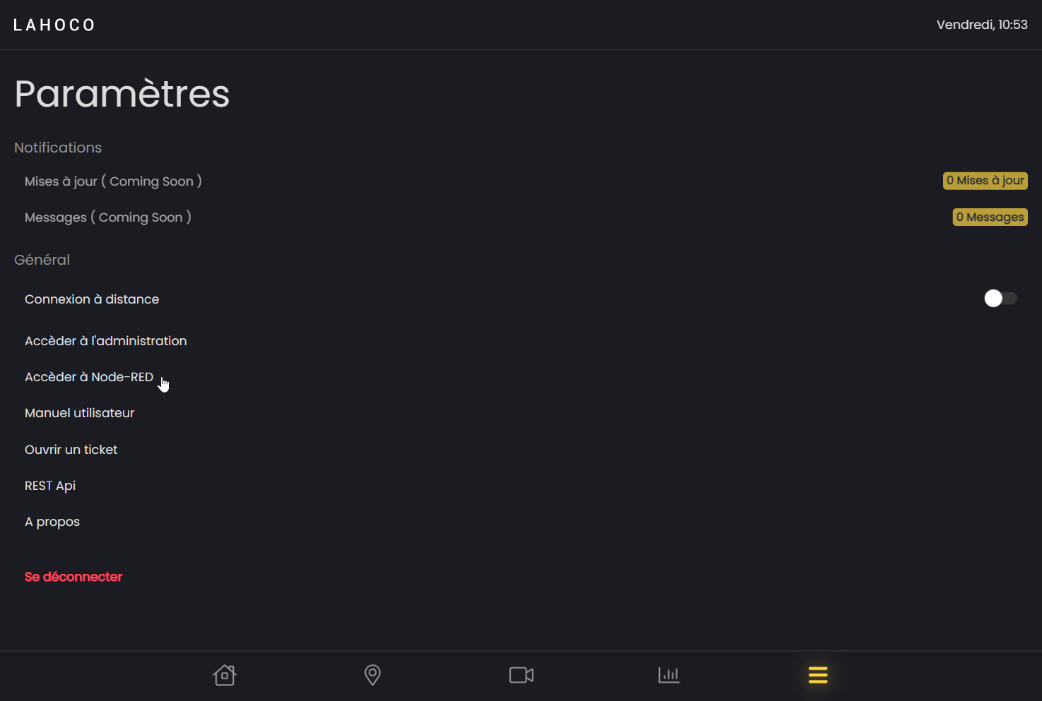 To access the Node-RED already installed on your LAHOCO installation, go to the settings tab and click on "Access Node-RED".